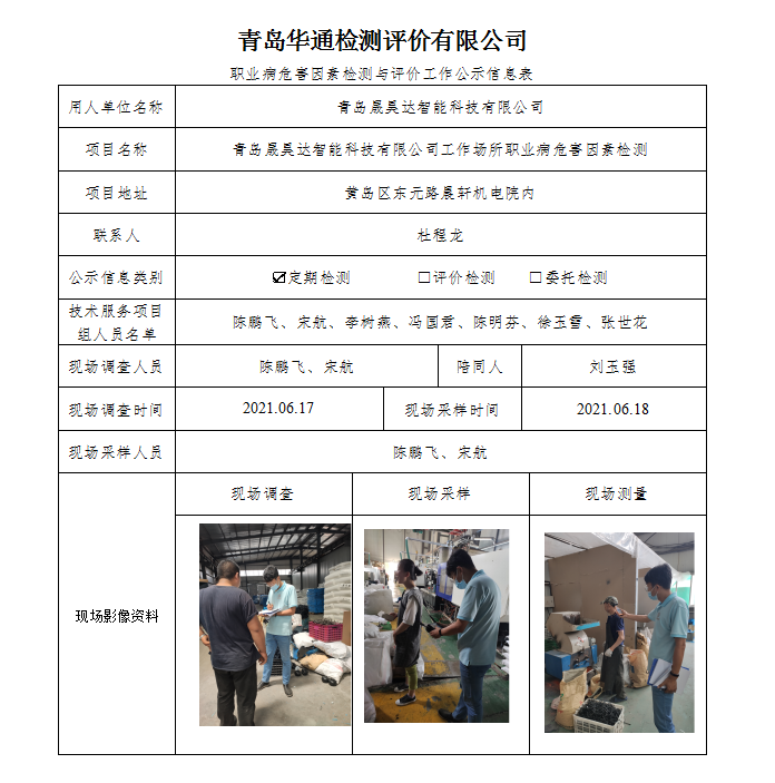 青岛晟昊达智能科技有限公司2021年定期检测